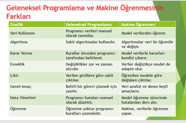 Geleneksel Programlama ve Makine Öğrenmesinin Farkları