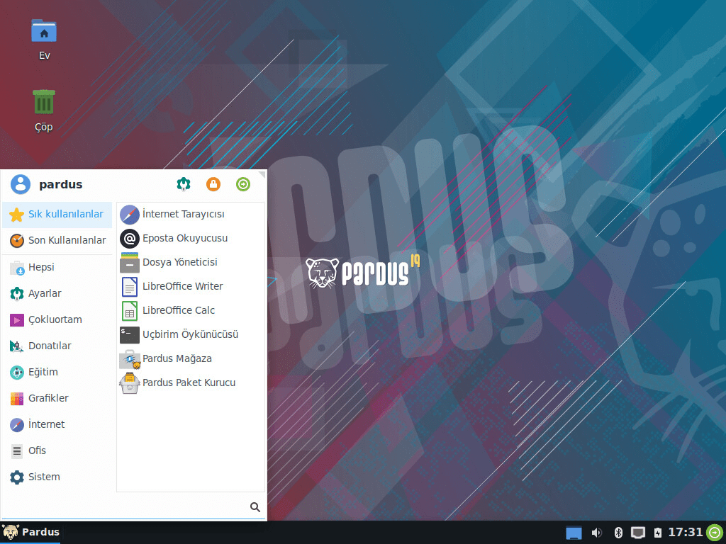 - Pardus XFCE: Hafif, hızlı ve eski donanımlarda bile yüksek performans